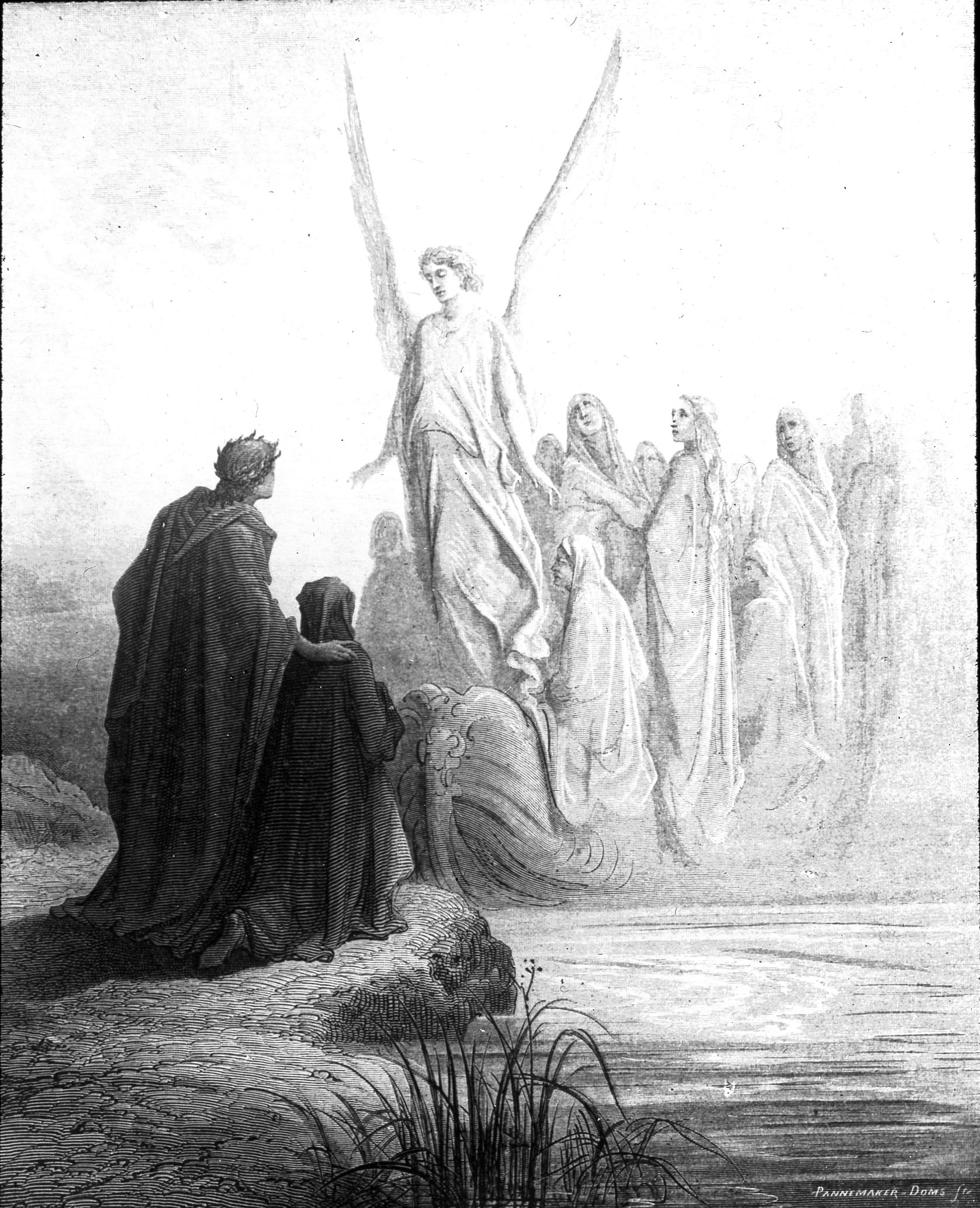 Divina Commedia : Purgatorio : canto II : L'angelo nocchiero : disegno di Gustavo Dorè