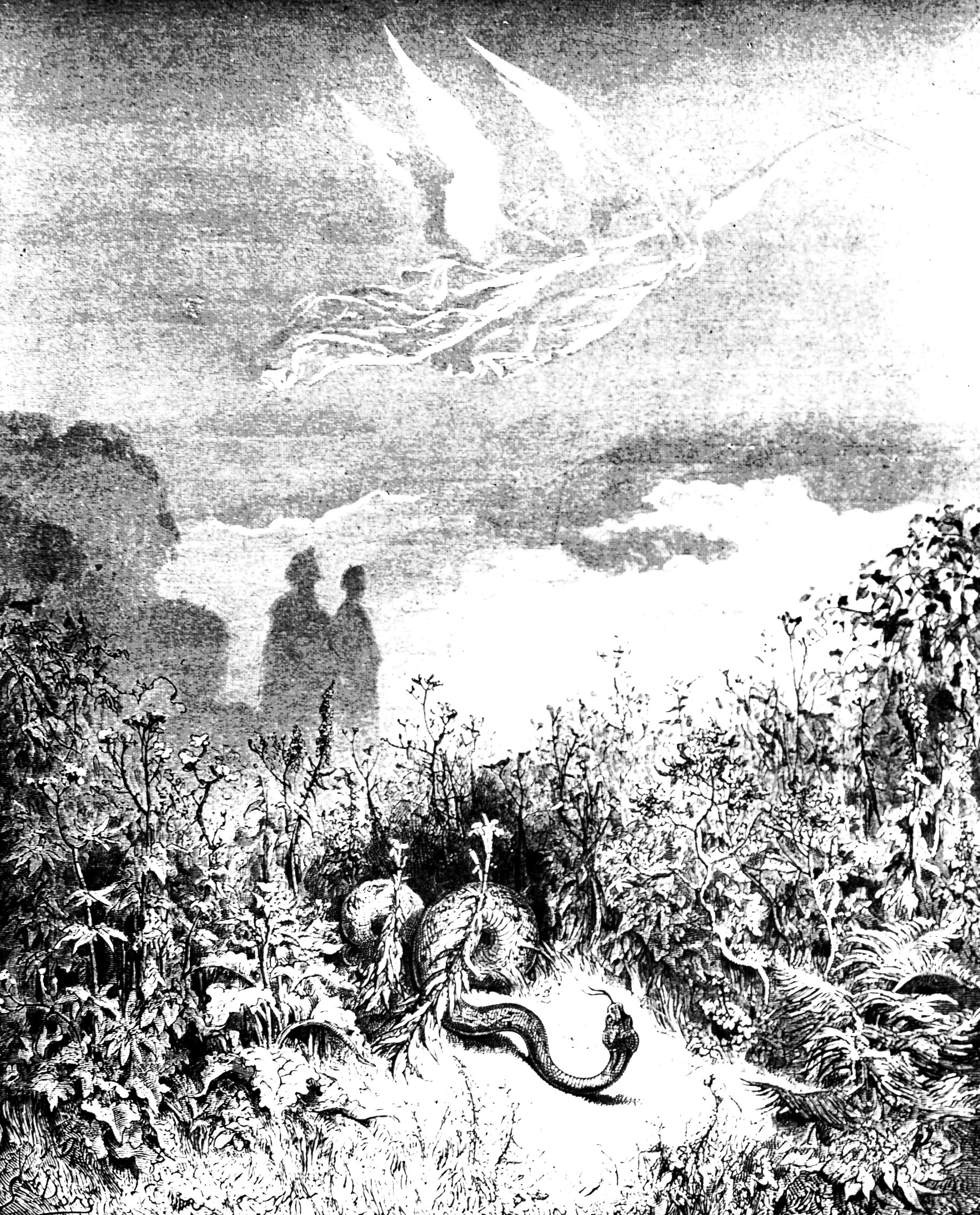 Divina Commedia : Purgatorio : canto VIII : Il serpe tra i negligenti : disegno di Gustavo Dorè
