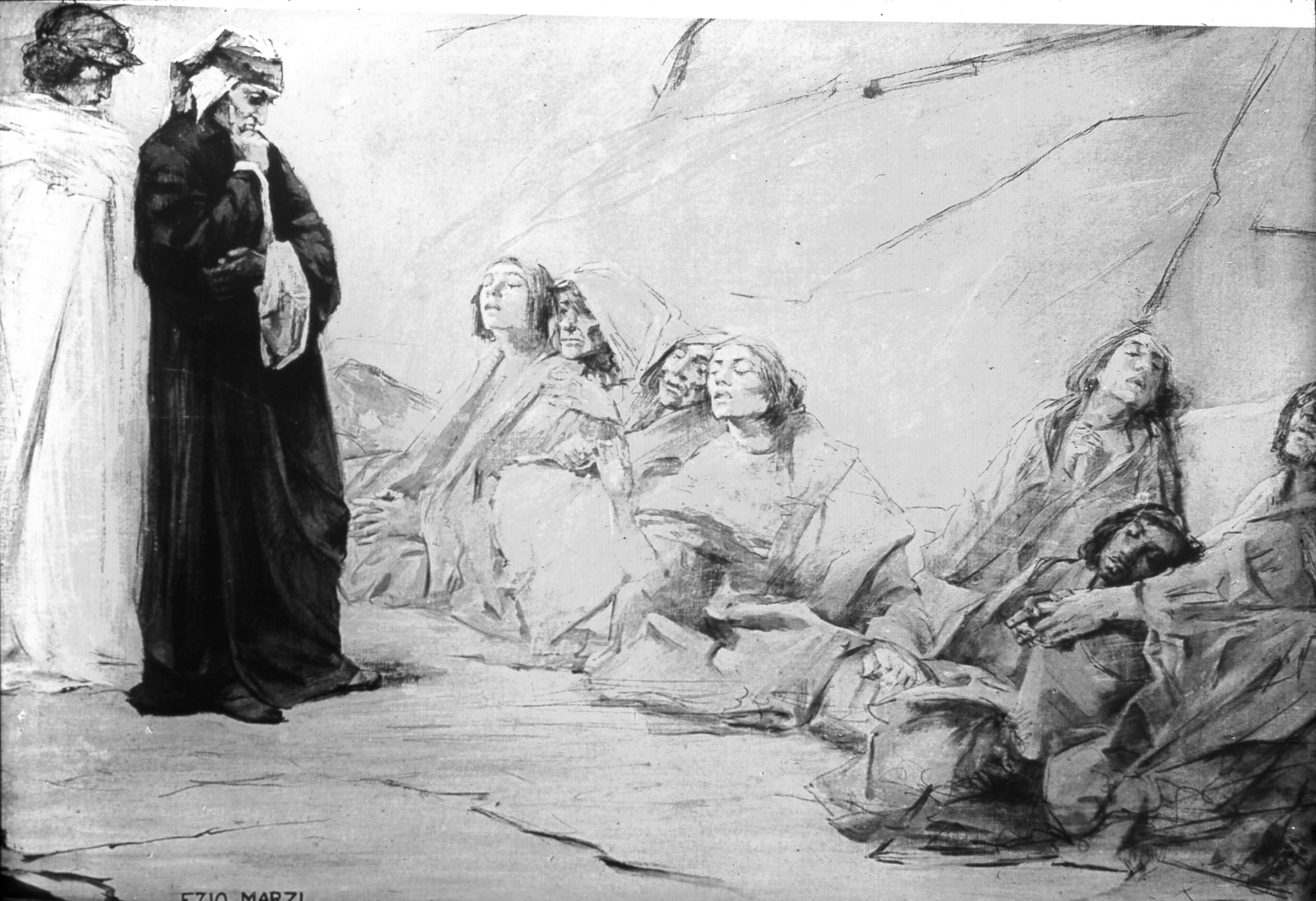 Divina Commedia : Purgatorio : canto XX : Gli avari e i prodighi : disegno di Adolfo Magrini