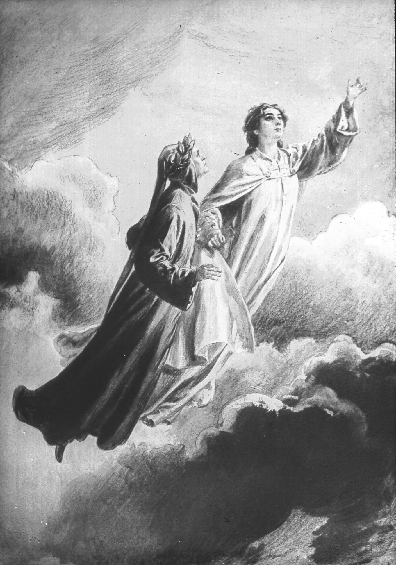 Divina Commedia : Paradiso : canto II : Dante e Beatrice salgono al primo cielo : disegno di Osvaldo Tofani