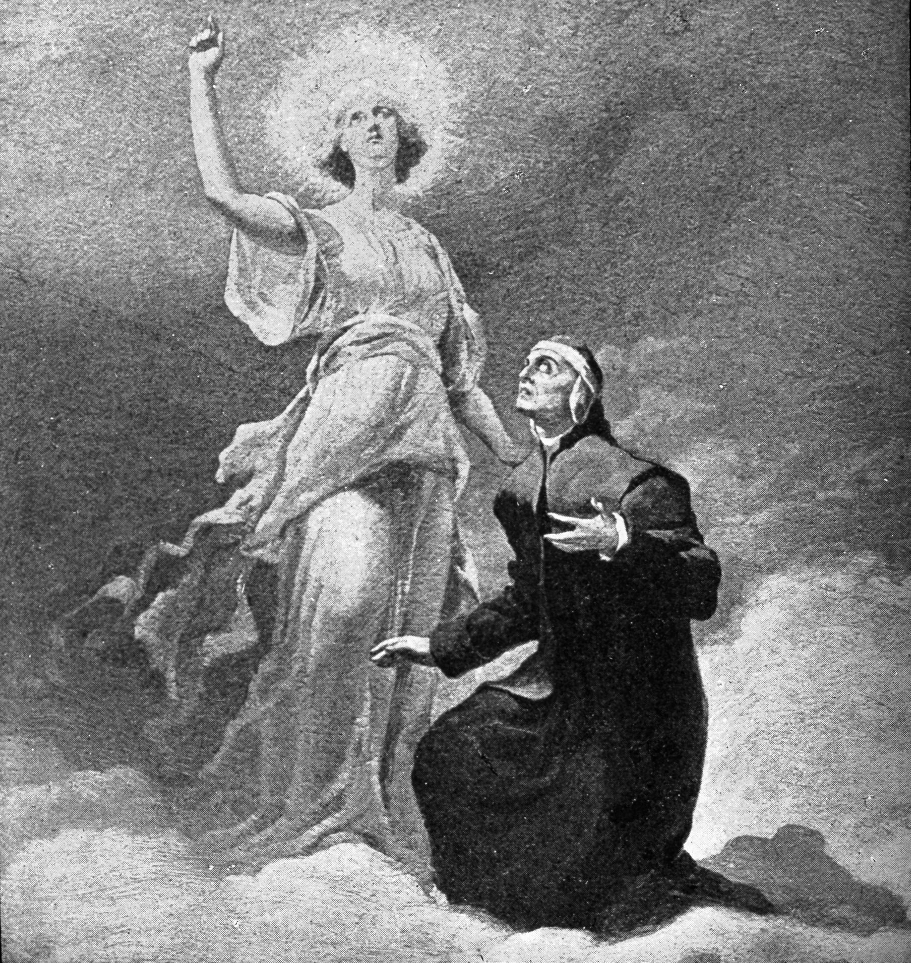 Divina Commedia : Paradiso : canto XXVIII : Dante e Beatrice nel cielo nono cristallino : disegno di Carlo Muccioli