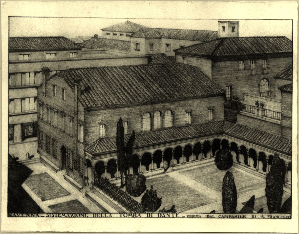 Ravenna : disegno della sistemazione della Tomba di Dante, veduta dal campanile di S. Francesco