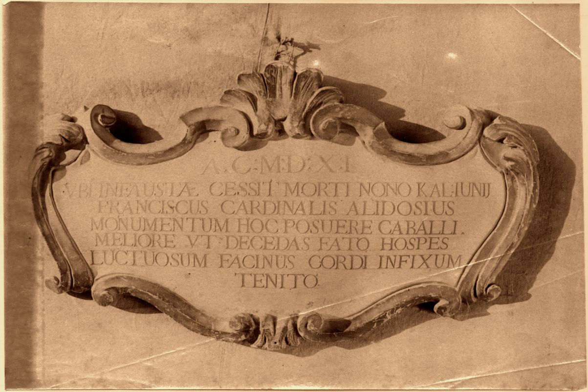 Lapide mortuaria dedicata al Cardinale Alidosi in Palazzo Cavalli