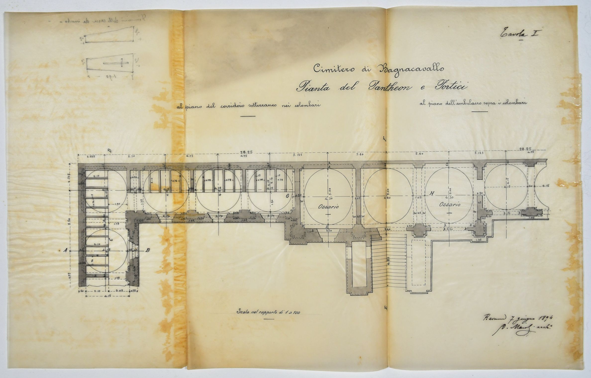 Cimitero di Bagnacavallo. Prospetto del Pantheon e portici |