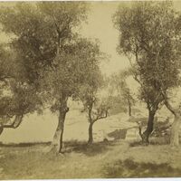 Paesaggio con ulivi e persone che camminano Autore Still Image