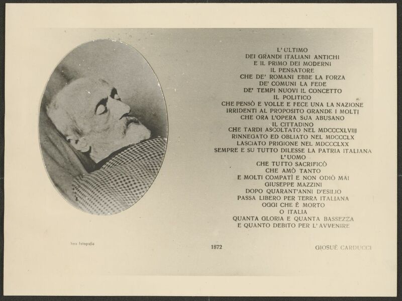 Giuseppe Mazzini sul letto di morte a Pisa e necrologio scritto da Giosué Carducci_A