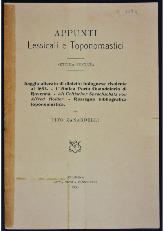 Saggio alterato di dialetto bolognese risalente al 1635, L'Antica Porta Guandalaria di Ravenna, Alt Celtischer Sprachschatz von Alfred Holder, Rassegna bibliografica toponomastica.pdf
