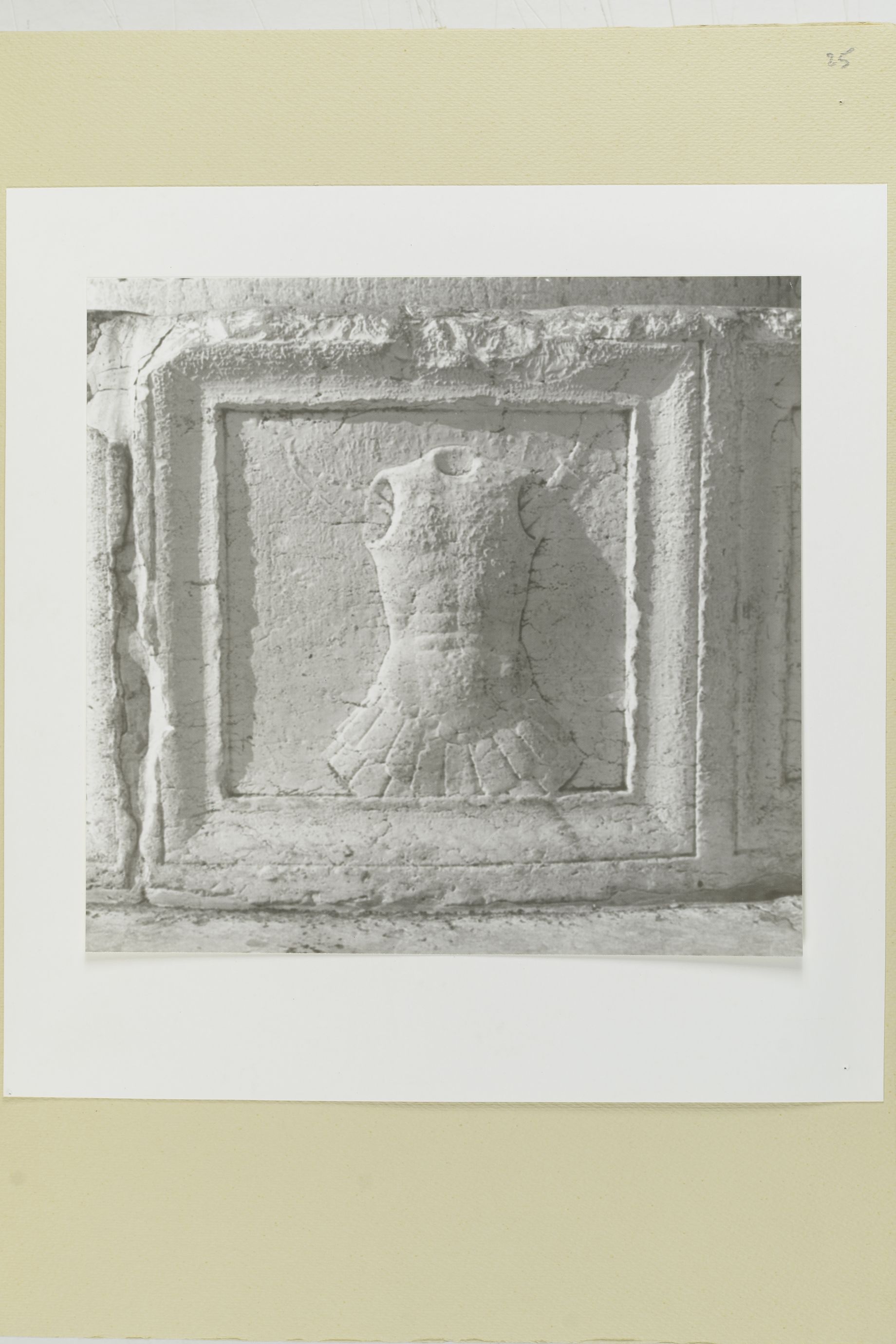 Piazza del Popolo – Corazza con spada e arco. Dettaglio bassorilievo della colonna nord.