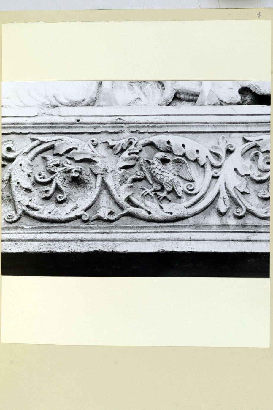 San Giovanni Evangelista – Portale gotico. Dettaglio parte superiore con bassorilievi.