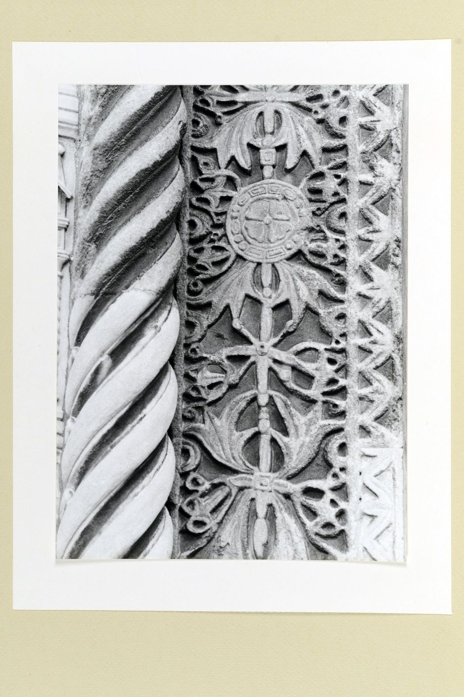 San Giovanni Evangelista – Portale gotico. Dettaglio colonnina e decorazione in bassorilievo.