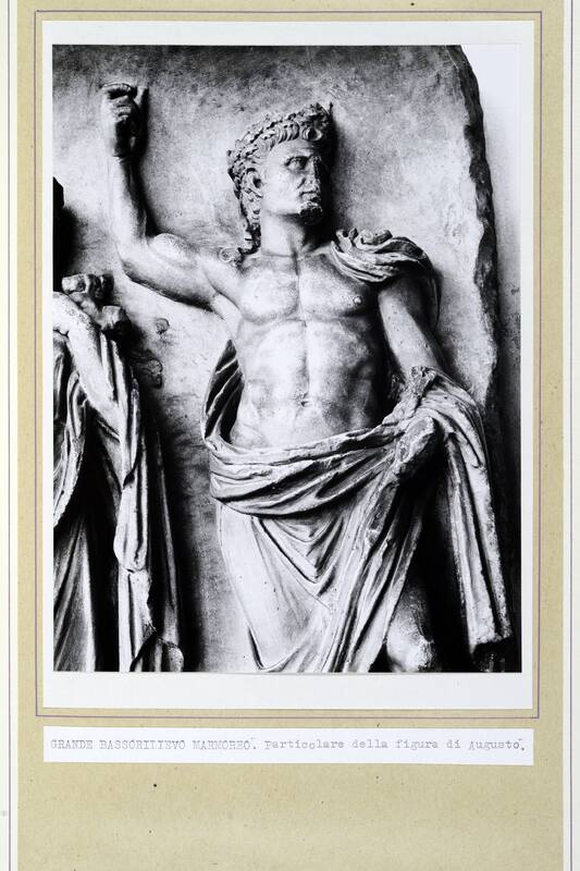 Grande bassorilievo marmoreo. Particolare della figura di Augusto.