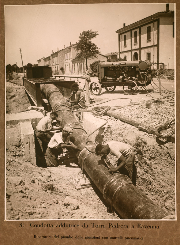 Condotta addutrice da Torre Pedrera a Ravenna. Ribattitura del piombo delle giunzioni con martelli pneumatici