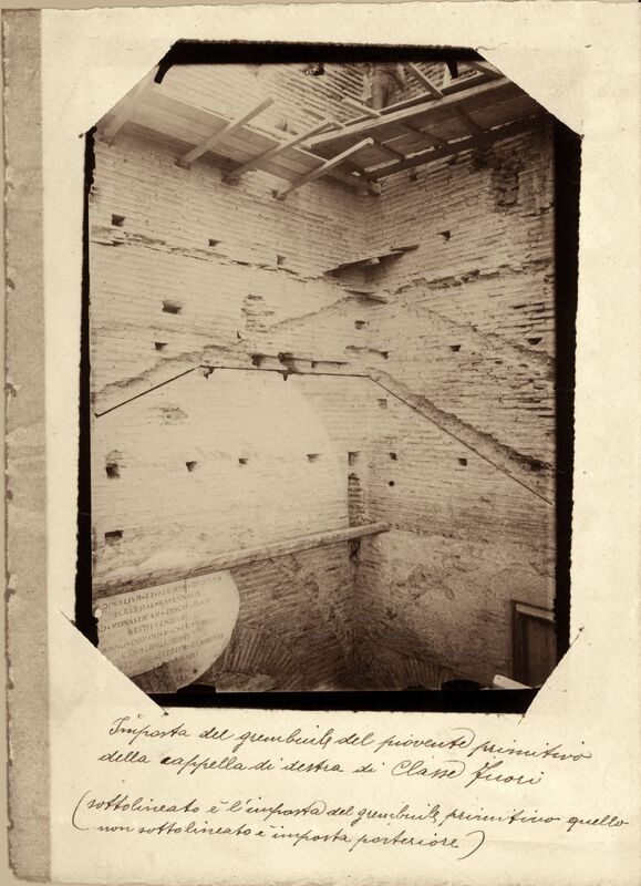 Ravenna: S. Apollinare in classe : imposta del Grembiule del piovente primitivo della cappella di destra di Classe Fuori