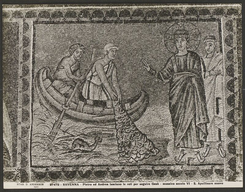 Pietro ed Andrea lasciano le reti per seguire Gesù - Musaico secolo VI - S. Apollinare Nuovo