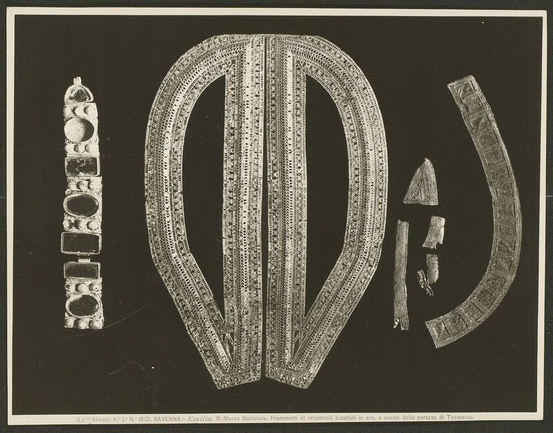 R. Museo Nazionale. Frammenti di ornamenti bizantini in oro, e avanzi della corazza di Teodorico