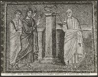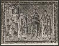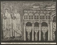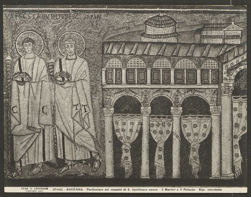 Particolare dei musaici di S. Apollinare nuovo - 2 Martiri e il Palazzo